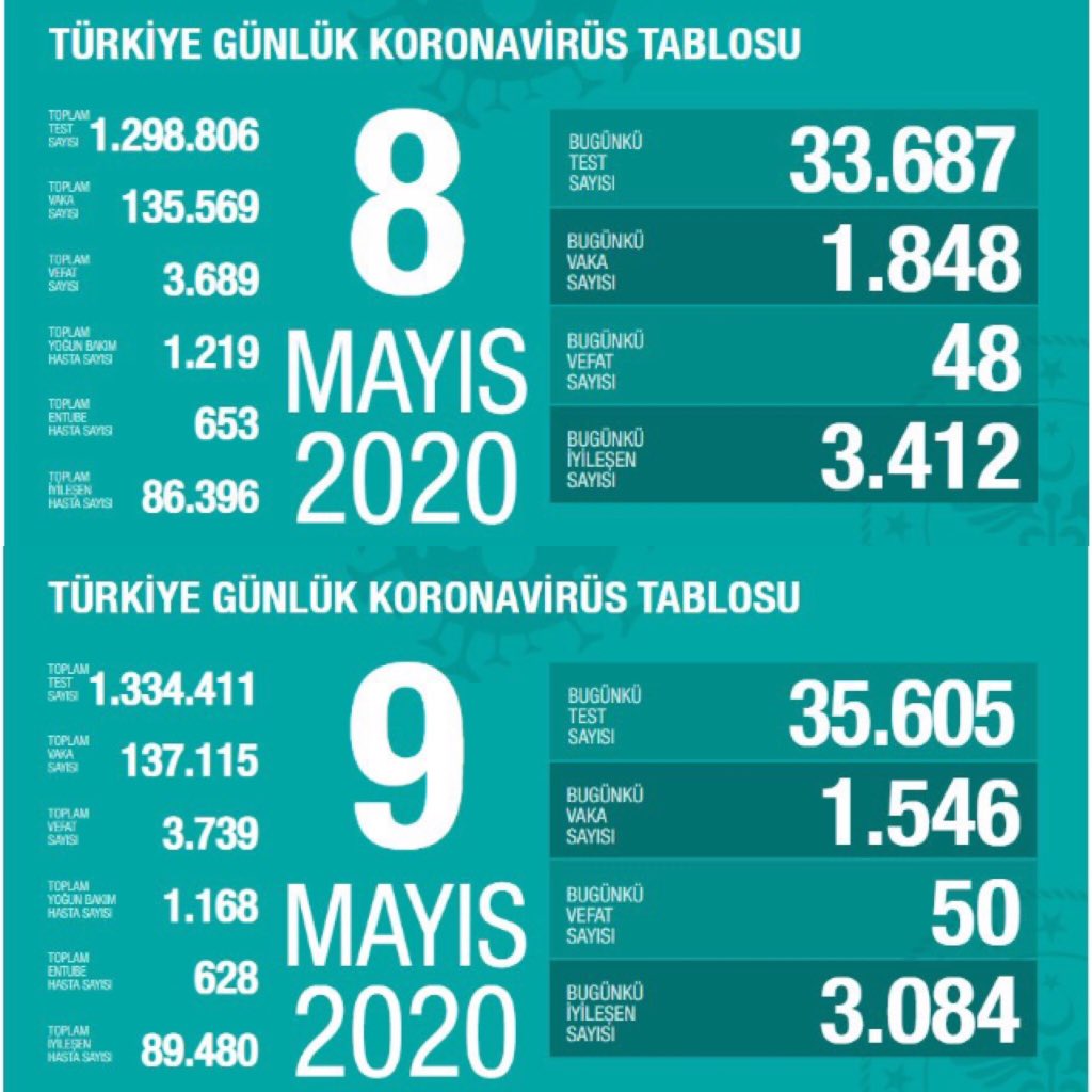 8 haziran ve 9 haziran 2020 türkiye korona virüs tablosu karşılaştırmaması #koronavirüs #türkiyevirüstablosu #vakasayısı.